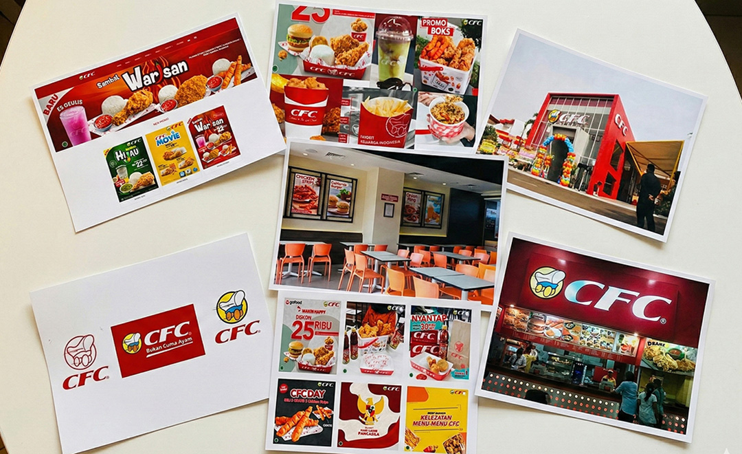 I began by examining why CFC’s branding felt inconsistent and less competitive within Indonesia’s fast-food market. I analyzed core brand assets—including the logo, color palette, typography, packaging, outlets, website, and social media—while benchmarking competitors such as McDonald's and KFC. CFC has a target market of families from middle to upper-middle class
