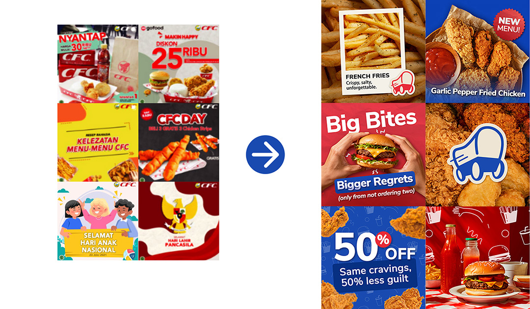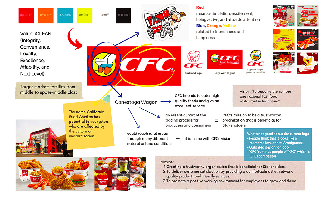 California Fried Chicken (CFC) is an Indonesian fast-food chain established in 1983, known for its affordable and family-friendly dining experience. Over time, inconsistencies across packaging, advertisements, and digital platforms weakened the brand’s visual identity. While the Conestoga wagon remained a recognizable symbol, the overall branding felt outdated and lacked cohesion.