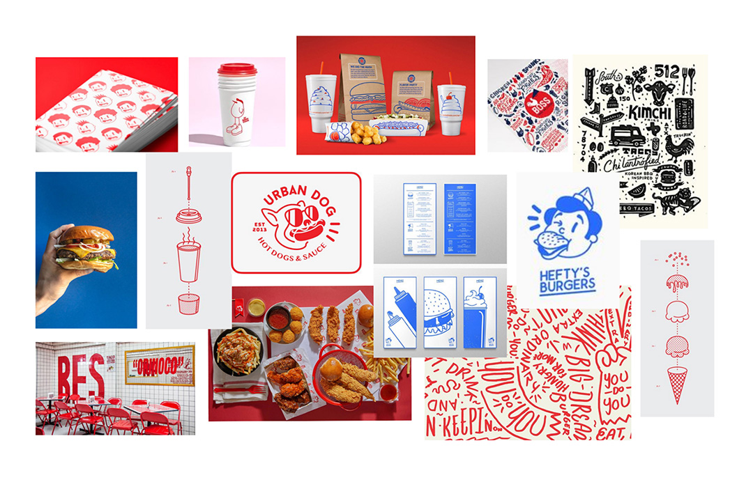 For the packaging system, I prominently featured the wagon logogram while introducing product-specific icons, such as burgers or drinks, to differentiate packaging types. I paired the red-blue palette with playful illustrations to create a friendly and energetic brand personality.