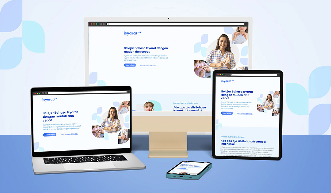 In Indonesia, the number of people who can communicate using sign language is still very limited compared to the number of deaf and hard-of-hearing individuals. This gap highlights the importance of raising awareness and educating the public about sign language. This website was created as an accessible learning platform where users can learn BISINDO (Bahasa Isyarat Indonesia) through interactive video content. Six commonly used BISINDO words will be demonstrated through a video, with a short quiz at the end of each lesson to reinforce learning. The visual design is kept minimal and simple, allowing users to focus on the core purpose of the project, which is learning BISINDO effectively without unnecessary distractions.