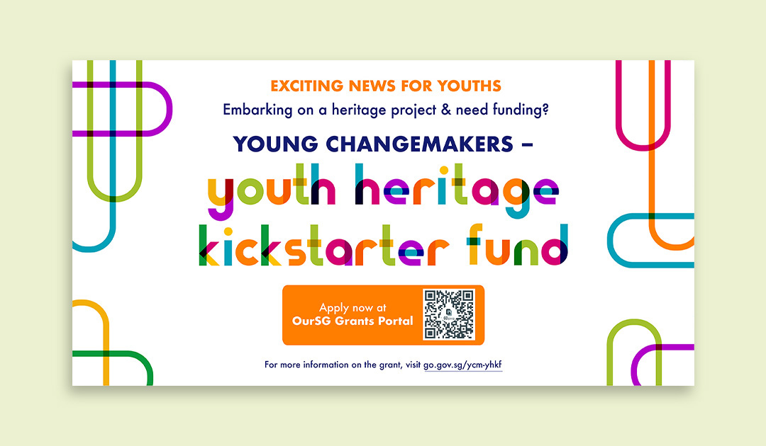 These collaterals were created in support of the National Heritage Board (NHB) and National Youth Council’s Young ChangeMakers Grant, which funds youth-led projects in the community. The initiative aims to empower youths to take an active role in preserving and safeguarding Singapore’s heritage. The colorful, overlapping pipelines symbolize the diverse ideas and backgrounds of youths coming together, representing collaboration and the continuous flow of support from concept to implementation. The vibrant palette and layered forms reflect youthful energy, inclusivity, and the diverse nature of Singapore’s living heritage. The deliverables for this project included web banners, social media posts, email marketing materials, and a factsheet.
