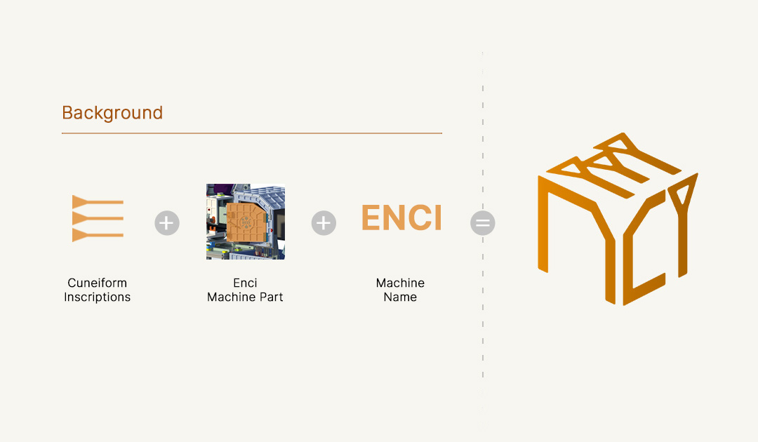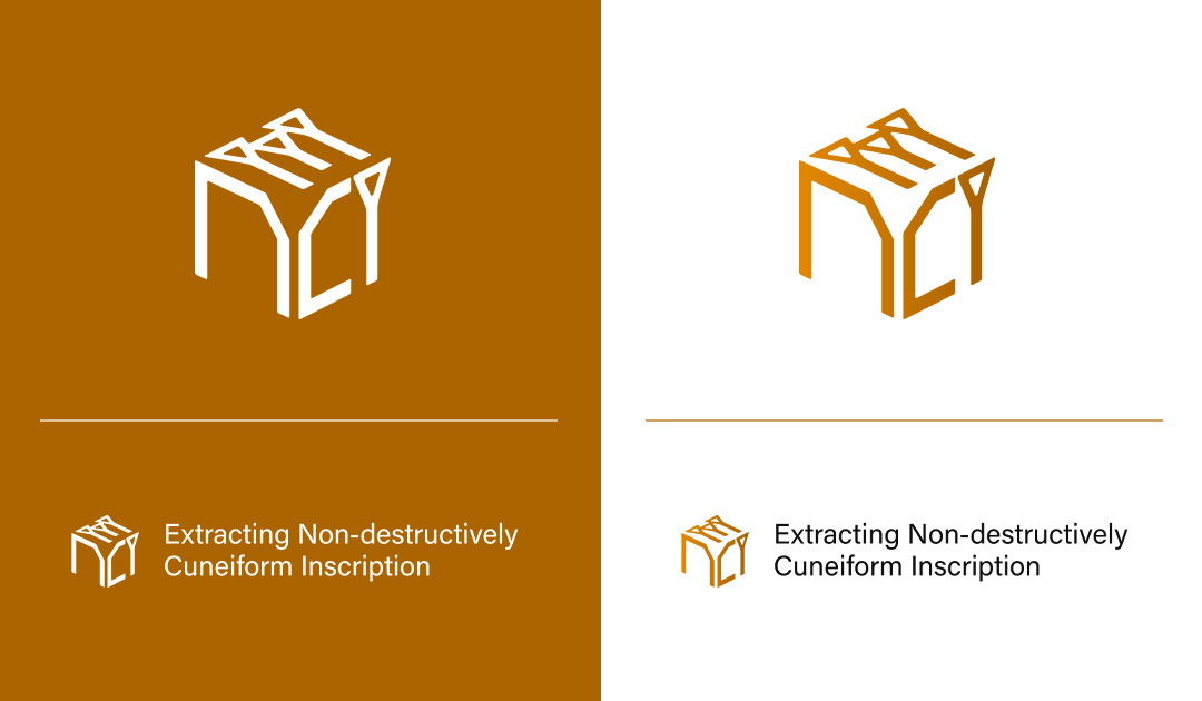 ENCI is a mobile computer tomograph developed by scientists at Universität Hamburg and DESY. The machine enables researchers to read 4,000-year-old cuneiform tablets for the first time, even though they remain physically sealed from view. The logo is inspired by the scripts of cuneiform inscriptions, combined with elements drawn from the machine’s structure and name. The color palette is derived from the natural tones of soil and ancient artefacts, reinforcing the project’s archaeological context.
