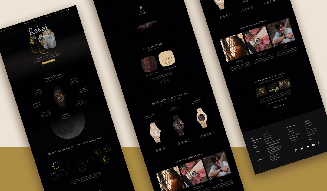 Rakai is a wooden moon-phase watch produced by Matoa Indonesia. This project was created as an SEO-Optimized product showcase website, highlighting the watch’s features, advantages, variants, and customer testimonials. The visual direction emphasizes elegance and timelessness, aligning with the craftsmanship and premium nature of the product.